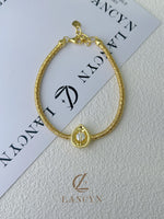 Each bracelet is masterfully crafted with intricate brushed and woven textures, creating a distinctive golden sheen that reflects understated luxury. The centerpiece features a free-floating, dancing stone, designed to move gracefully with every subtle motion — capturing light from every angle and sparkling as if alive.