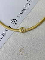 Each bracelet is masterfully crafted with intricate brushed and woven textures, creating a distinctive golden sheen that reflects understated luxury. The centerpiece features a free-floating, dancing stone, designed to move gracefully with every subtle motion — capturing light from every angle and sparkling as if alive.